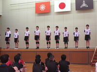 ・伝統のユニフォームを身にまとい,やや緊張気味の表情で入場した1・2年生を3年生が温かい拍手で迎えました。