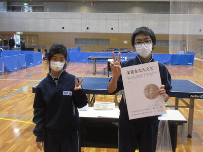 本校からは3組の1年西根ガールと2年西根ボーイが「卓球の部」に出場。