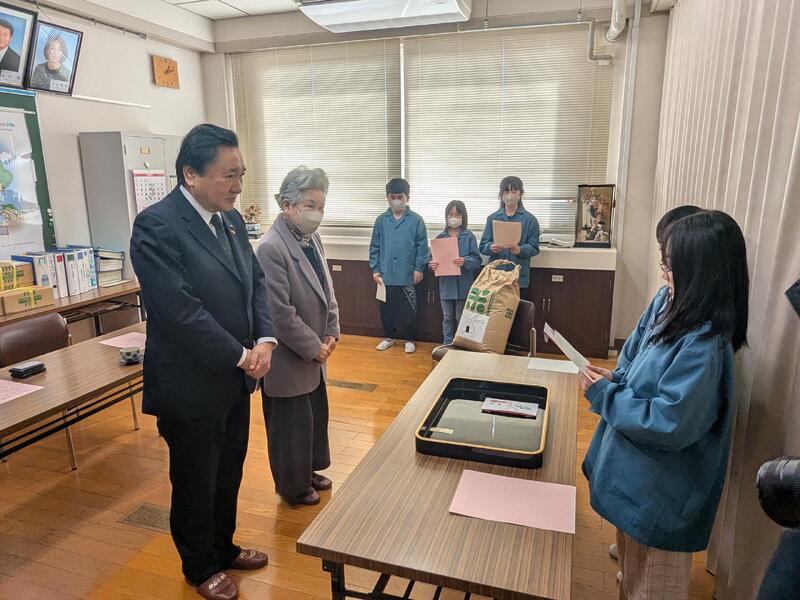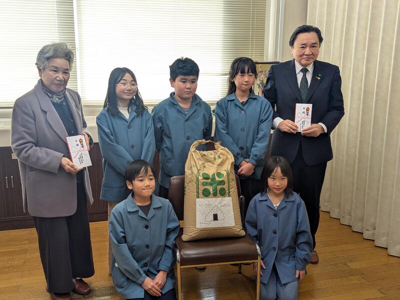 2025年1月28日 00時34分5年生がふるさと学習で育て収穫した米を、地域の社会福祉に役立ててもらいたいと、子ども食堂を設営している2つの社会福祉団体に寄贈しました。