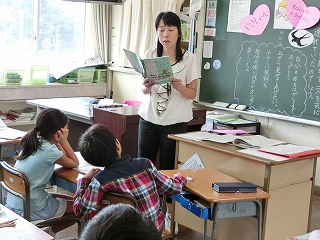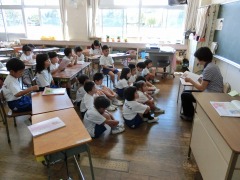 1年生の教室では、物語の読み聞かせを行っていました。お話の展開に興味深く、目を輝かせながら聞き入っています。