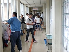 それぞれ町内会毎に教室を指定し(毎年同じ町内会が同じ教室を使用することにしています)、保護者の方に教室を覚えてもらうことや、教師・保護者ともに引き渡し-引き取りの方法を確認しながら、非常時に確実な引き渡しができるようにとの訓練です。