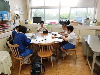 先生の仕事を体験したい、という中学2年生の男子3名、女子2名、計5名が活動しています。