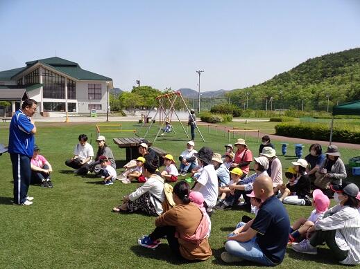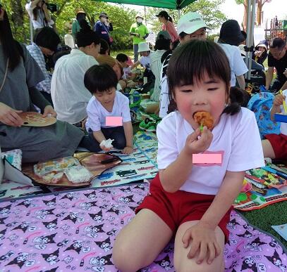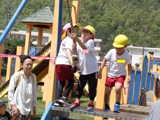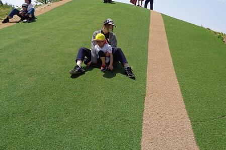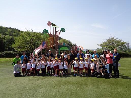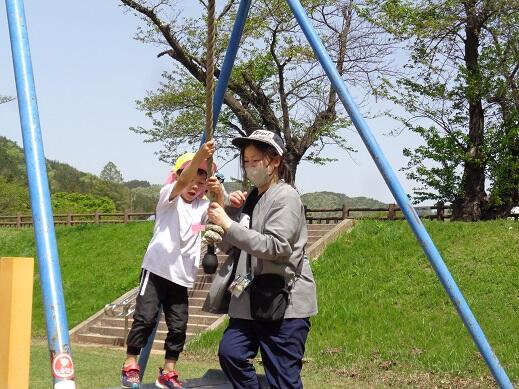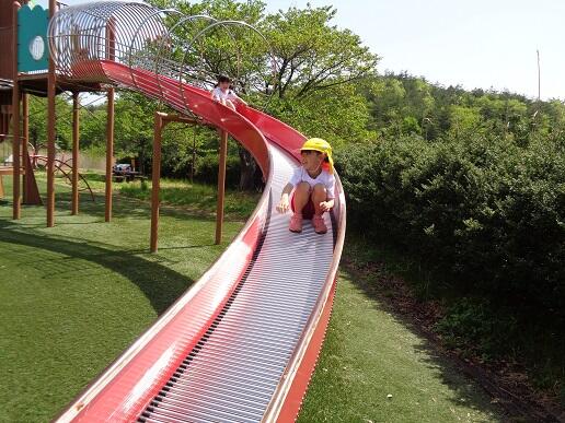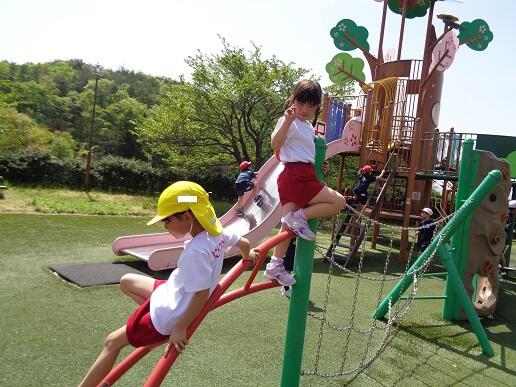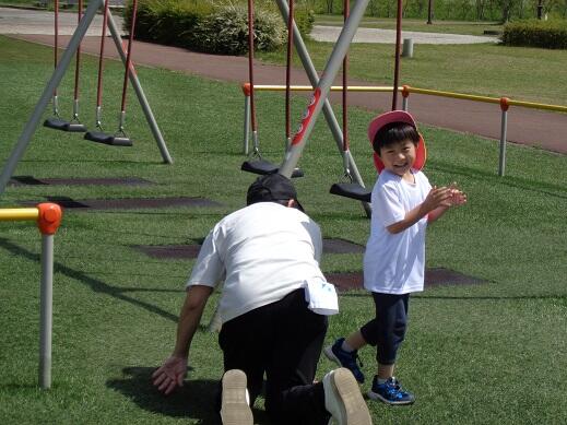 4月26日(金) さわやかな青空の下、庭塚・佐倉・岡山の3園で十六沼公園へ遠足に行きました。天候に恵まれ親子でぴょんぴょんドームや複合滑り台、大きな山の滑り台等、楽しく遊ぶことができました。池の近くにはカメも顔をだしていました。テントの下でお弁当を食べ、思い出に残る良い一日となりました。