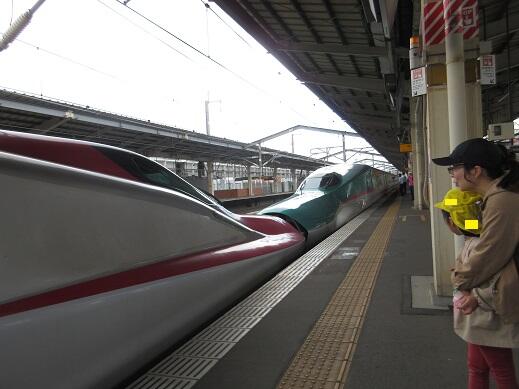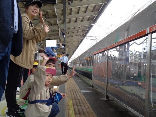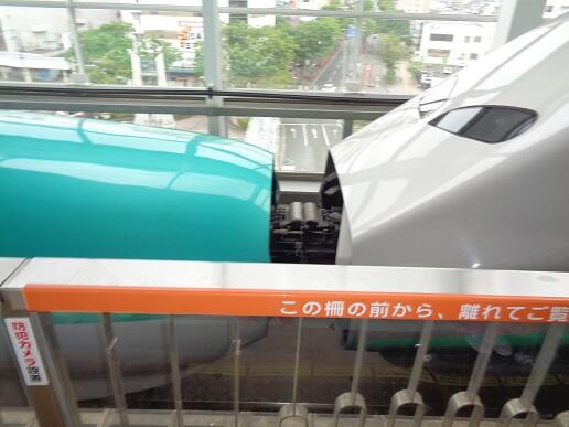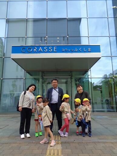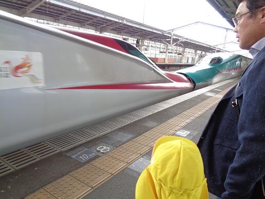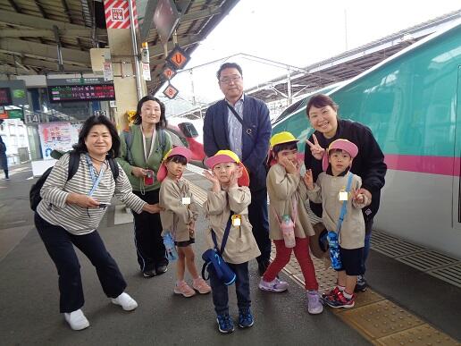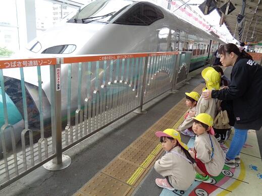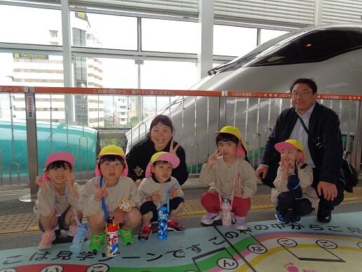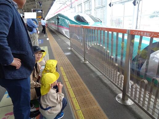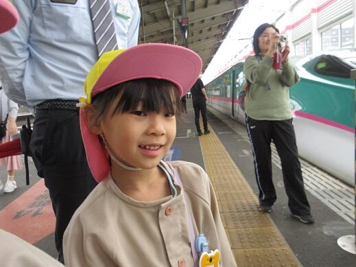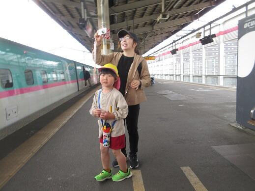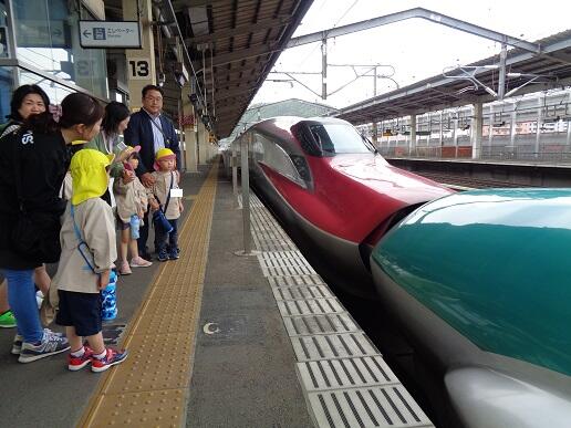 4月30日(火) 今日は、福島駅で新幹線とコラッセ福島を見学してきました。ハヤブサとこまち、つばさとやまびこの連結を目の前で見ました。ゆっくり近づき、ガシャンと連結するまでみんな黙って、真剣に見ていました。連結し終わると自然と拍手が起こりました。大喜びで見ていると、近くを通りかかった福島駅の方が「写真を撮りますか」と声をかけてくれて集合写真をとってもらいました。夏休みでも家族と一緒に乗ってもらいたいですね。