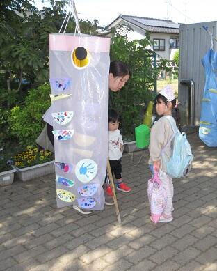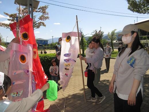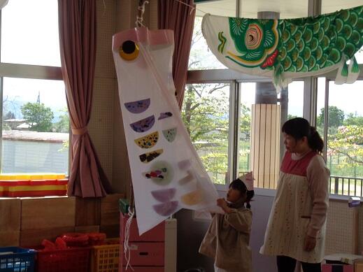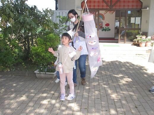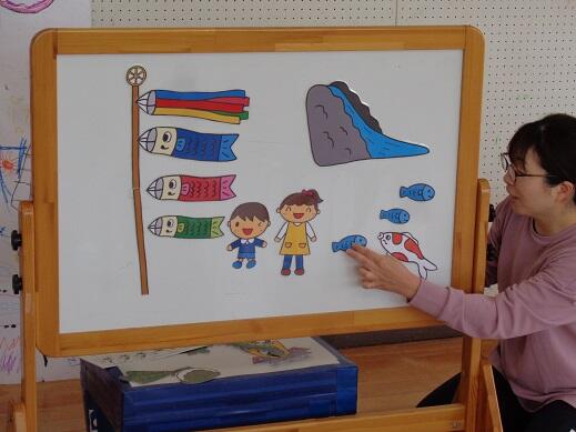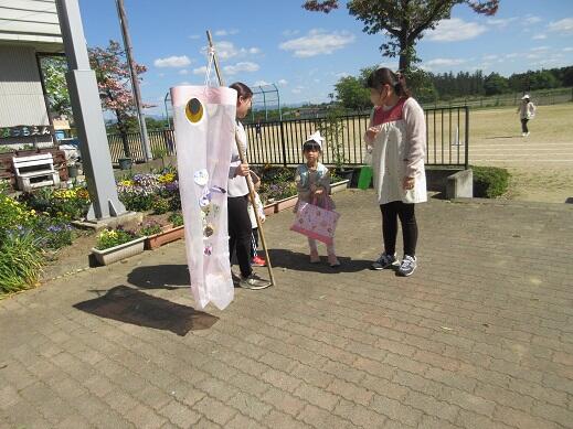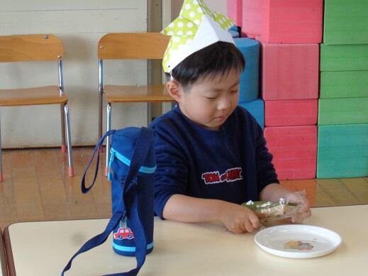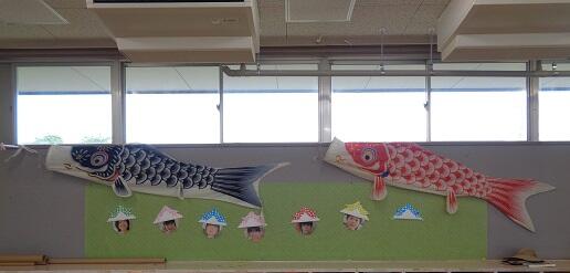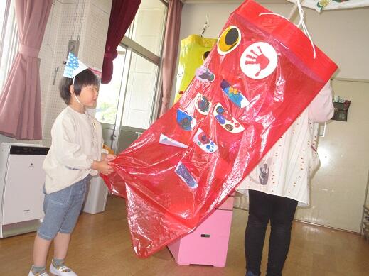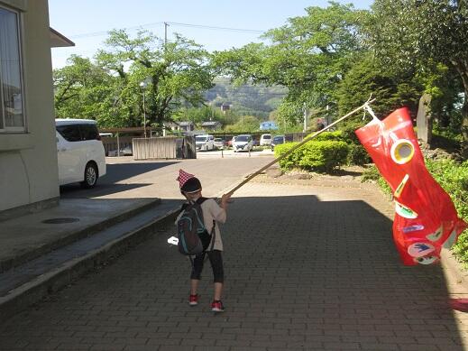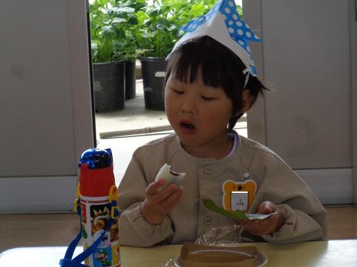 5月2日(木) 今日は、こどもの日の集いをしました。子どもの日にこいのぼりを揚げたり、兜を飾ったりする理由をお話しました。子ども達が作ったこいのぼりの難しかったところや楽しかったところを発表してもらいました。その後、みんなで柏餅を食べました。甘くてとてもおいしかったですね。