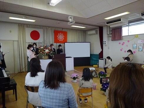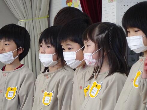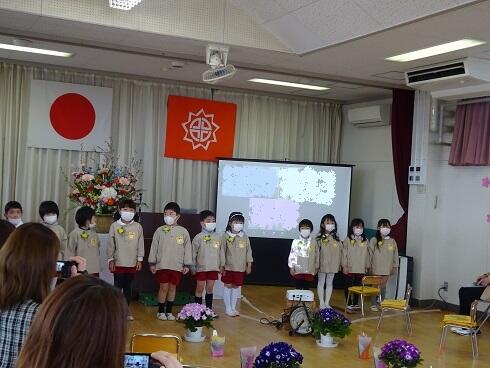 年少児は、お別れの言葉や歌をがんばりました。大きな声でお話し、大きな声で堂々と歌うことができました。落ち着いた雰囲気の中で、式を進めることができました。