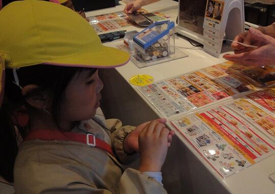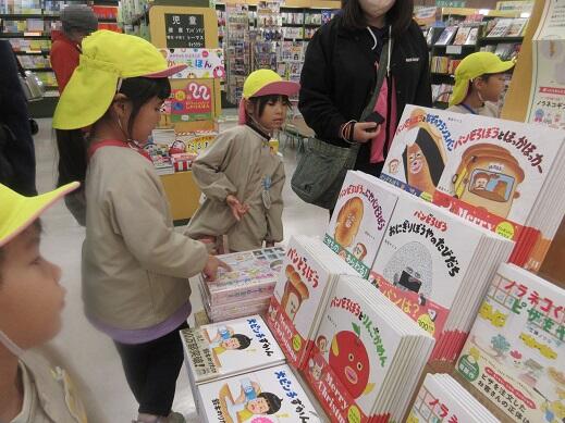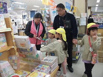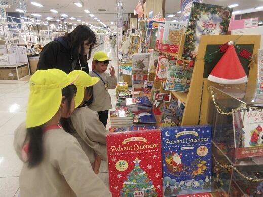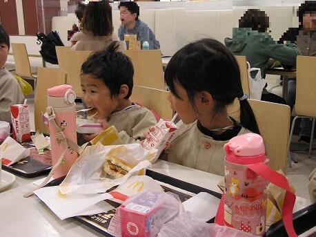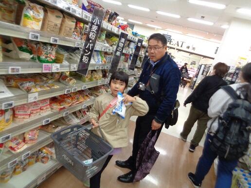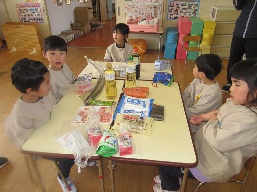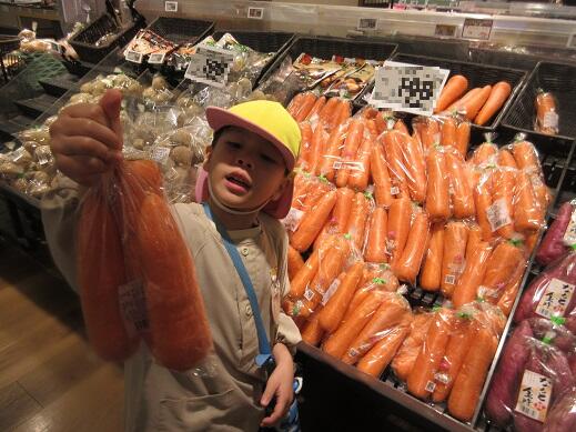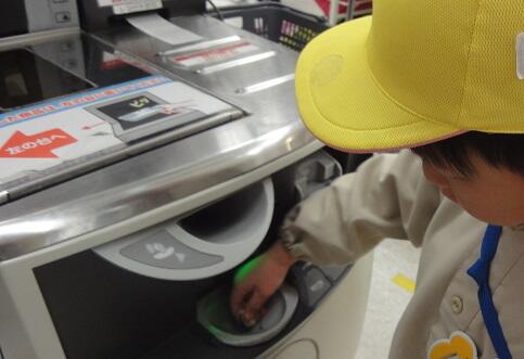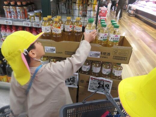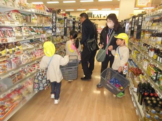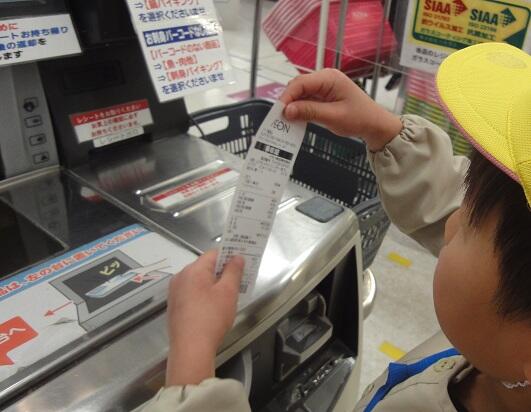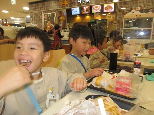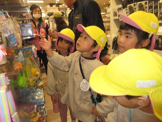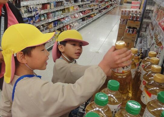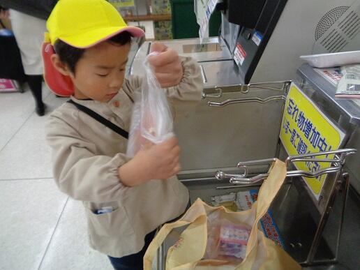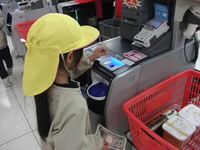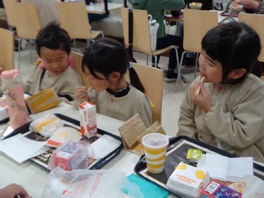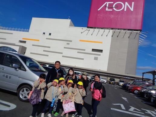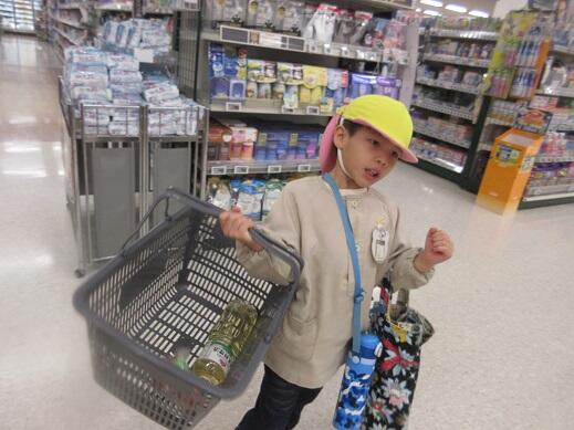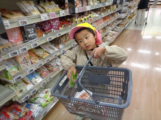11月26日(火) 園外保育でイオンへ行ってきました。いも煮の材料と12月に行うもちつき会の食材の買い出しです。子ども達の買い物体験は、何度か行っていましたが、今回も大きなスーパーマーケットのイオンで買い物体験をすることにしました。野菜や肉、味噌・醤油等自分たちで食材を見つけ、レジで支払いをしました。また、お昼は、フードコートで自分たちの好きなメニューを選んで食べました。