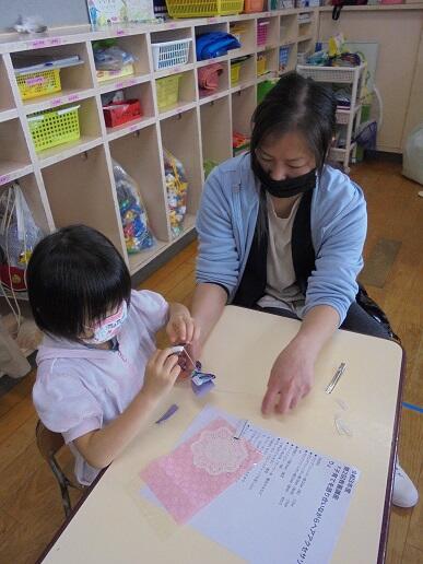 10月28日(木) 講師に渡辺めぐみさん(ハンドメイドアクセサリー作家)を迎え、第2回教養講座(親子によるアクセサリー作り)を行いました。髪どめや蝶ネクタイの制作は、幼児も親子でできる楽しい内容でした。わいわいとお話しながら作品を仕上げ、素晴らしいものがたくさんできあがりました。子供たちも大喜びでした。楽しいひと時をありがとうございました。