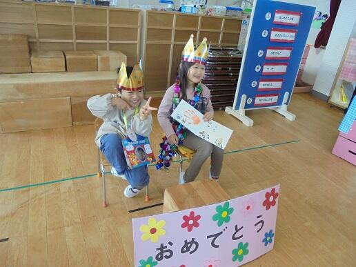 10月29日(金)10月の誕生会を実施しました。年長さんは、自分の役割をきちんと理解し、堂々とみんなの前で、進行したり、プレゼントを渡したりとスムーズにできるようになってきました。仲良く会が運営できる子供たちです。