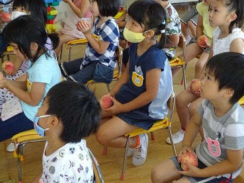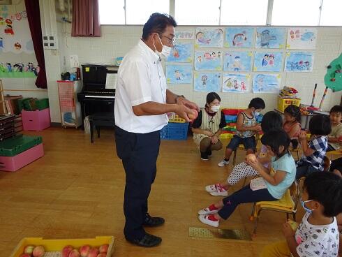 また、今月、幼稚園のまわりでは、ももが収穫されている時期です。果物づくりがさかんな土地であることを説明されました。