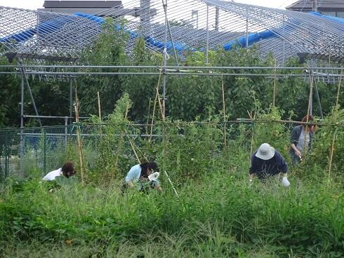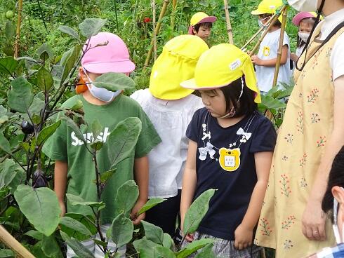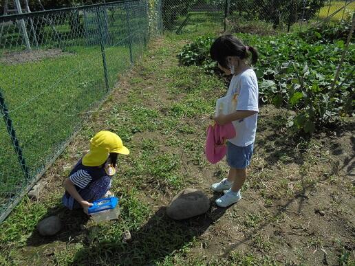 畑で、虫を捕まえたり、野菜を収穫したり、楽しい交流ができました。