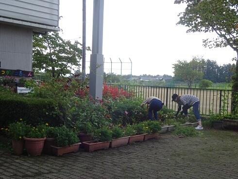 8月26日(木)朝からPTAの皆さんに花壇と畑の環境整備作業を行っていただきました。人との間隔を取り、感染防止に気を付けての作業でした。夏草のあった花壇や畑は、隅々まできれいになり、とてもきれいになりました。子どもたちが、虫取りや野菜の収穫に思う存分活動できることと思います。