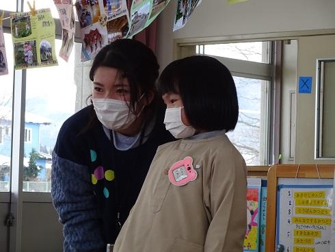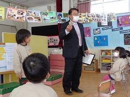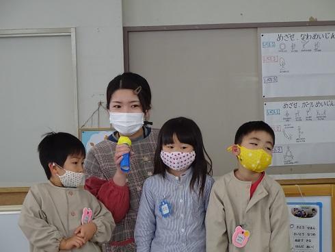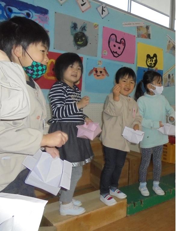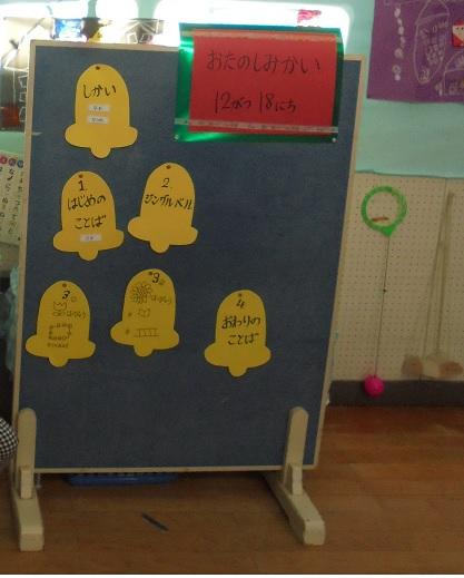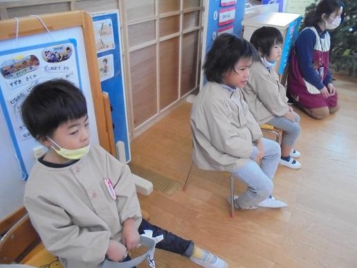 12月22日(火) 子供たちは2学期の終業式で、思い出に残る楽しかった遊びを発表しました。年少組では、子ヤギさんの鬼ごっこ、年長組は、雪遊びやリンゴ狩り、友達と遊んだこと等を発表しました。みんな堂々と発表できました。園長先生からは、冬休みに新型コロナにかからないようにするためのお話を聞きました。マスクや手洗い、ソーシャルディスタンスが大切であると、子供たちから意見が出てきました。楽しい冬休みを過ごし、みんな元気に新年を迎えましょう。
