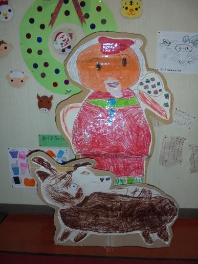 また、年長組は、大きなサンタを作りました。年少組は大きなサンタに大喜びでした。