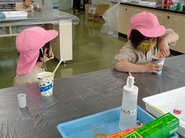 1月15日(金)こむこむ館に見学にいきました。プラネタリウムで福島市から見える冬の星や星座の勉強をしました。次に、年長さんは粘土で手形を付けた壁掛けづくりをしました。手形をつけるのに苦労しましたが、みんな上手に作ることができました。年少さんは、スライム作りをしました。好きな色をつけて自分だけのスライムが出来上がりました。その後、図書室で本を読みました。たくさんの本がありました。楽しい一日となりました。