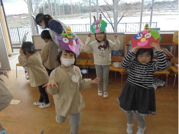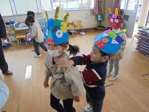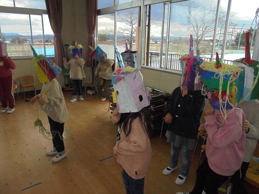 2月2日(火)みんなで豆まき集会をしました。はじめに、各クラスから「ゲーム鬼」「なきむし鬼」などの追い出したい鬼の発表がありました。次に、豆まきをしました。交互に鬼の面をかぶって、鬼の役をしました。「鬼は外、福は内」と何度も豆を投げました。良い一年となることでしょう。