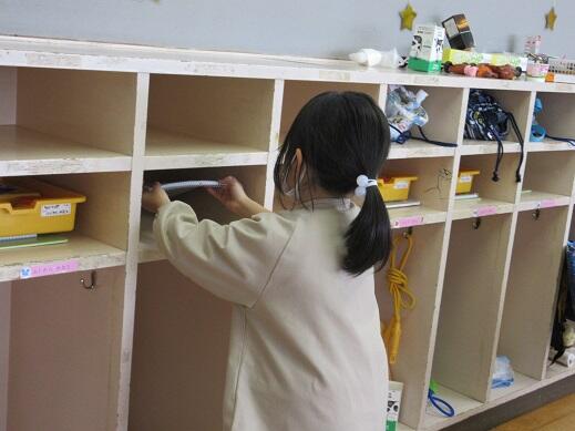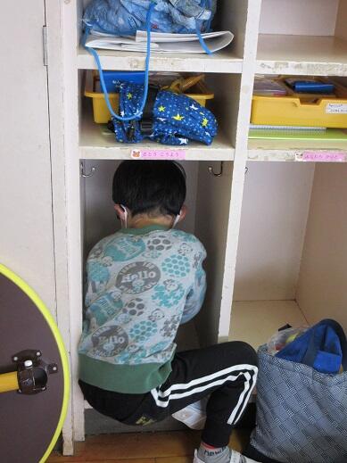 12月22日(木) 「新しい年は、きれいなお部屋で迎えたいね。」という先生の話から、自分たちの部屋を見渡すとロッカーがとても汚いことに気づきました。「これは、ロッカーを掃除したほうがいいね。」とみんなの意見が一致。みんなでロッカーの大掃除が始まりました。丁寧に自分の持ち物を整理整頓しました。明日は雑巾できれいに拭き掃除する予定です。