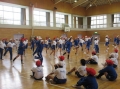 音楽に合わせてウォーミングアップ。ヒップホップの音楽に合わせ講師の佐藤先生に振り付けを教えていただきました。佐藤先生の楽しい指導もあり、子どもたちはノリノリで楽しく体を動かし、最後はみんなで一体感を感じることができました。