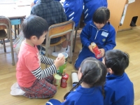 『ボックスの中の野菜は何かな』クイズや、エプロンシアターなどで食育の学習を行いました。これから「がんばりシート」で、野菜をもっと食べることにチャレンジしていきます。