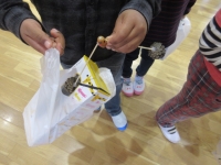 1年生が心をこめて作った手作りのプレゼントをおわたししました。