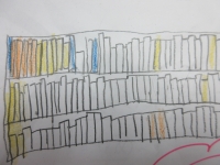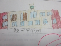 画像は「野田中学校の様子、学習センター図書室の様子」の児童のスケッチです。