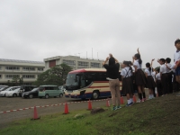 ◇ 9月7日、6年生は予定通り、修学旅行に出発しました。野田山から5年生が見送ります。