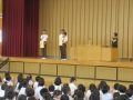 また、夏休み中に行われる大会に参加する、特設水泳部と合唱部の壮行会を行いました。