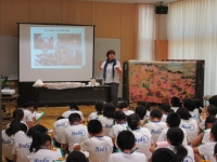 ◇ 7月14日、3年生は読み聞かせの先生(吾妻こどもの本の会)から、吾妻地区に伝わる伝説や昔話を聞きました。