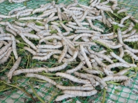 初めて手にした真綿の柔らかくて温かい感触や、初めて見る『蚕様』に子どもたちは驚きの声を上げていました。