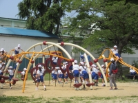 友達と遊具やタイヤで遊んだり、草花を摘んで花束にしたり、虫を探したりしました。