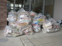 地球森林環境保護委員会児童が中心になって、牛乳パックの回収を呼びかけました。