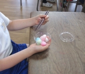 お茶碗を持って、正しいはしの持ち方を確かめました。