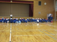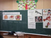 ◇ 1年生は、給食センターの栄養士の先生と正しいはしの持ち方を学習しました。
