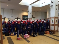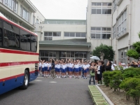 学校での出発の集いを終え、6年生や保護者の方に見送られ出発しました。