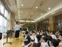 始まったばかりの、音楽科のリコーダーの学習です。東京からおいでいただいたリコーダーの先生が演奏する楽しい曲を聴いたり、きれいに吹けるこつを習ったりしました。これからの学習が楽しみです。