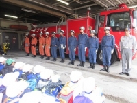 防火服を着用したり、はしご車の訓練を見学したりしました。