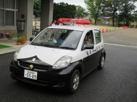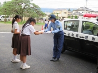 辞令を受け、八島田駐在所長さんとパトロールカーに乗り、地域の皆さんに交通安全を呼びかけました。