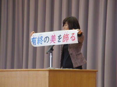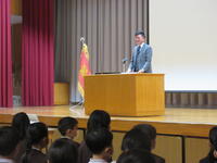 第3学期始業式では、校長から、命あることに感謝し、一人一人が「有終の美を飾る」ことができるよう、