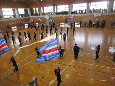 そこで、これまで壮行会を開くなどして応援してくれた全校生に、感謝の気持ちを伝えようと、18日(月)と19日(火)の2日間にわたり、素晴らしい演奏と演技を披露してくれました。体育館いっぱいに響き渡る迫力ある演奏と一糸乱れぬ隊列、美しい表現力に、見ていた子どもたちは大きな感動を覚えたようでした。日頃の感謝の気持ちを伝えるよい機会となりま