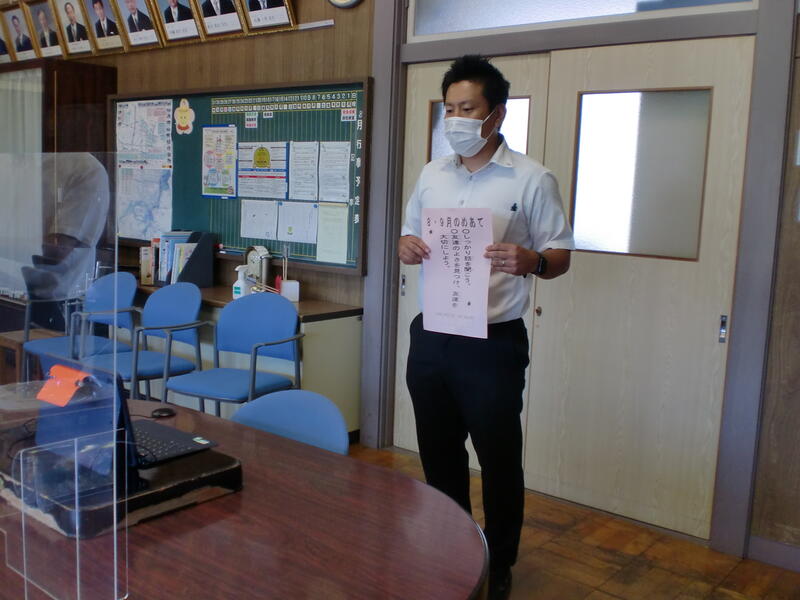 校舎に子どもたちの元気な声が帰ってきました。32日間の夏休み。子どもたちは充実した日々を過ごすことができたようです。今日から85日間の2学期が始まりました。始めに、夏休みに活躍した特設水泳部と特設合唱部の表彰を行い、その後2学期の始業式が行われました。校長先生からは「1.目標を持って努力し続けること 2.あいさつなど自分から進んで行動すること」の2つをがんばろうとお話がありました。