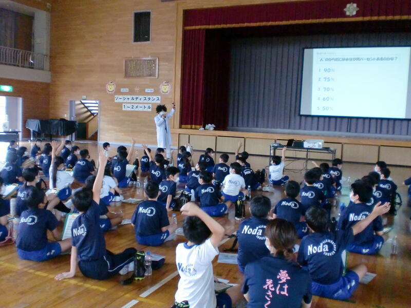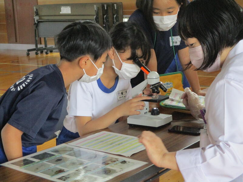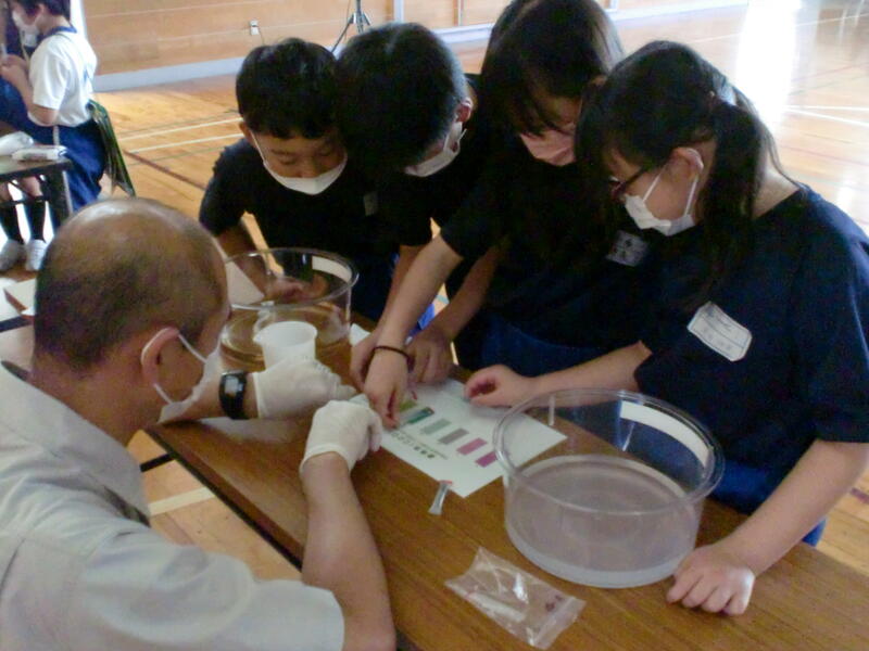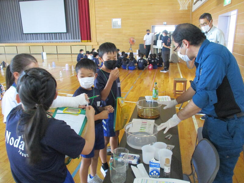 県の浄化槽協会福島支部の方が、野田小学校を訪れ、水についての貴重なお話をいただきました。パックテストで実際に水の汚れを確かめたり、汚れをきれいにする浄化槽や、その働きを助ける微生物を顕微鏡で観察したりと、貴重な体験をすることができました。