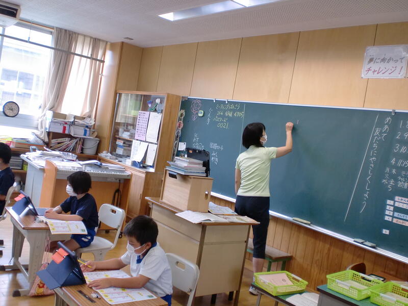 9月13日(火)市内一斉のオンライン授業が行われました。1年生は初めてのオンライン授業でしたが、学校での練習とお家の方のご協力のおかげで、無事接続して授業を受けることができました。また、朝から登校した子どもたちも、机の向きを変えたり廊下に机を移動したりと、学年ごとに工夫してオンライン授業を受けていました。