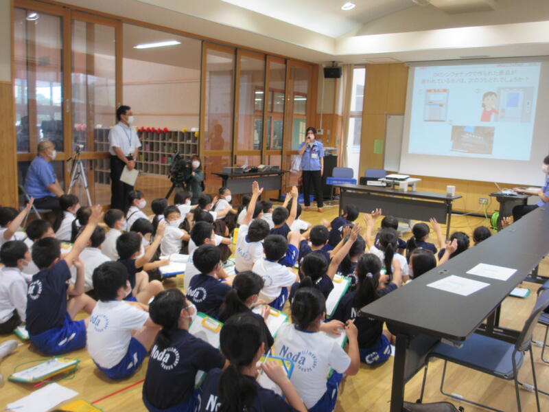 2021年7月1日 07時40分29日(火)3年生は社会科の「はたらく人とわたしたちのくらし」の単元、「工場の見学」の学習で、「OKIシンフォテック」さんをお招きしての出前授業を多目的ホールで行いました。工場の内容・製品がつくられる様子を映像で見せていただいたり、日本一の会社を目指して、働く人たちががんばっていること、また、コンビニや銀行のATMで使われている電源をつくっている等、教科書ではわからないことをたくさん聞いたりすることができました。私たちの身近にある工場が、日本中にある製品の中の大切な部分をつくっていることにとても驚き、同時に地域の魅力を再確認した様子でした。