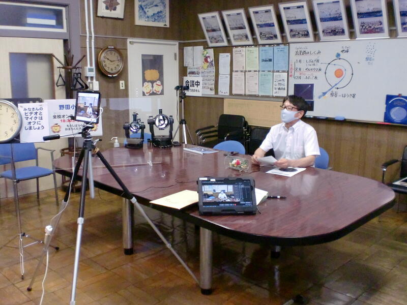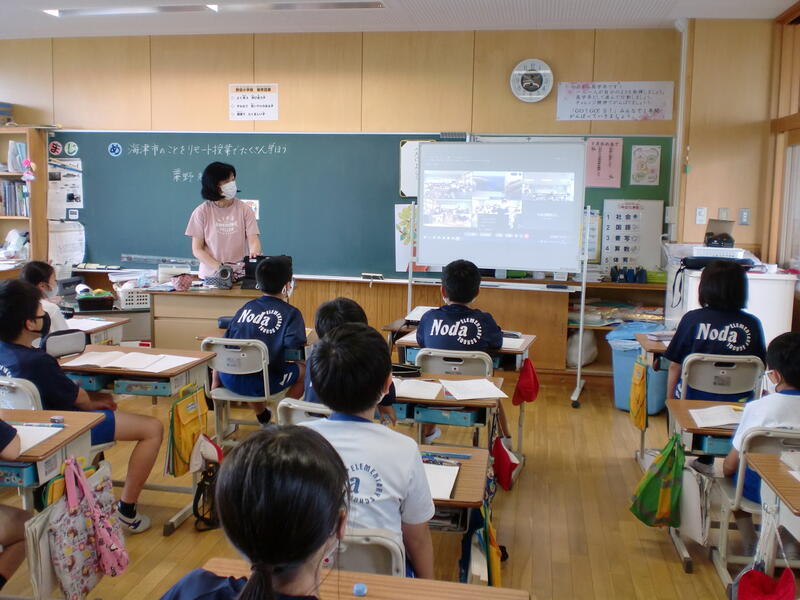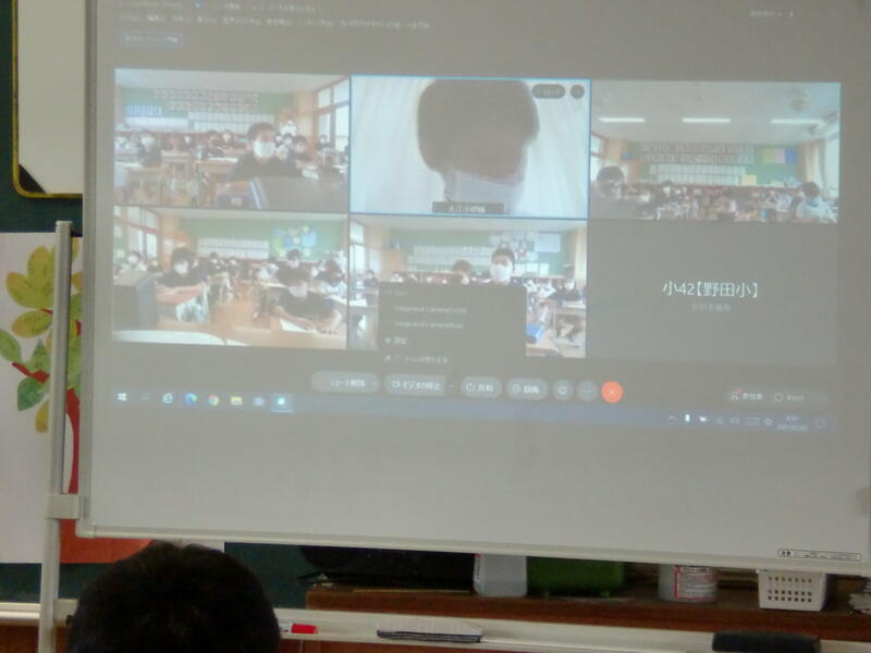 2021年7月2日 16時10分2日(金)、5年生は岐阜県海津市立大江小学校の教頭先生とオンライン学習を行いました。5年生の社会科は、日本の特色ある土地のくらしについて学習をしています。1学期は「低い土地のくらし」で代表的な岐阜県海津市について学習をしました。今回、縁があって、海津市の学校の教頭先生とリモートでつなぎ、低い土地のくらしについて直接話をいただく機会をもつことができました。子どもたちが学習を通して思った疑問を、事前に大江小学校に送り、それに教頭先生がオンラインで答えるという形で行われました。これまでは教科書や資料集などで調べ、それをまとめて終わるという形がほとんどでしたが、ICTが充実したことで、このように遠い地域の学校にもオンラインで直接対話をすることができるようになり、これまでよりも深い学びにつながる可能性を感じることができました。