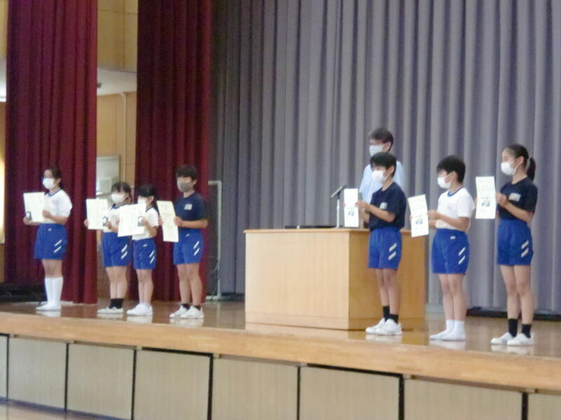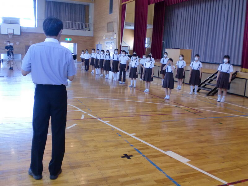 終業式の後は、夏休みに地区音楽祭に出場する合唱部のみなさんの壮行会です。昨年度は新型コロナの影響で大会が中止でしたが、今年は2年ぶりに行われます。無観客での開催ですが、練習の成果を十分に発揮してがんばってほしいと思います。