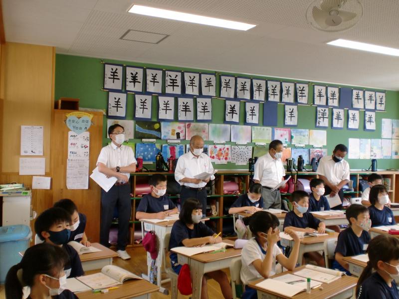 15日(火)に今年第1回目の「学校評議員会」が行われました。2年・4年・5年・なかよし1組2組の授業を参観し、その後校長室で話し合いを行いました。「どの学級もとても柔らかい雰囲気が出ていて、のびのびと学習に取り組んでいていいですね。」と、お褒めの言葉をいただきました。