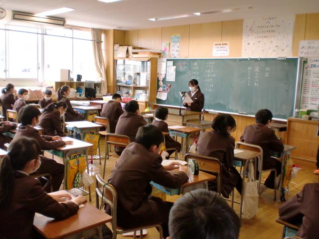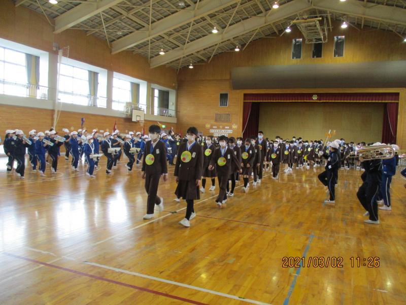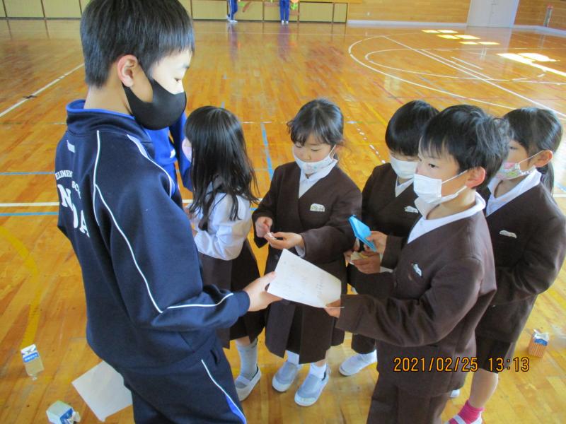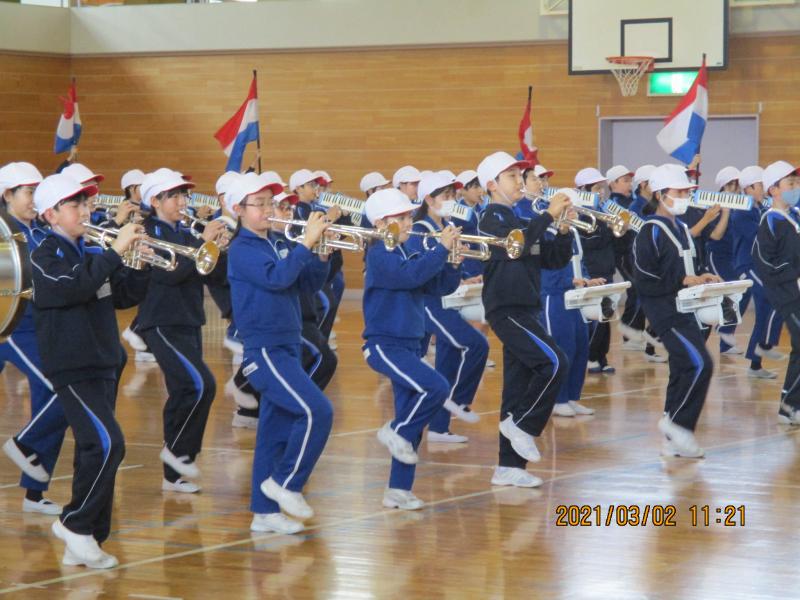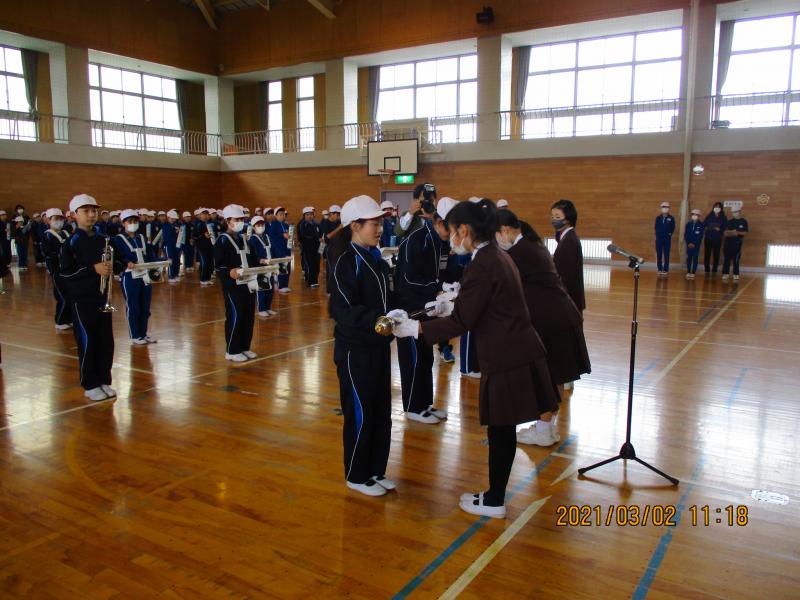 6年生を送る会終了後、体育館では鼓笛移杖式が行われ、6年生から5年生へバトンが引き継がれました。今回の6年生を送る会は、企画・運営・準備・司会進行を5年生が中心となって行い、6年生に少しでも楽しんでもらおうと、全員が協力して一生懸命がんばりました。オンライン中継など、初めての試みも大成功でした。きっと来年も立派な最上級生となることでしょう。