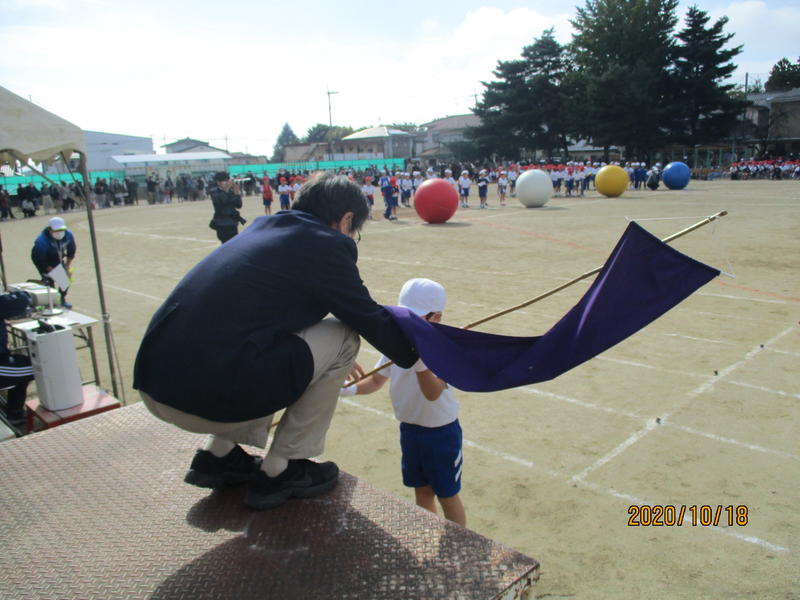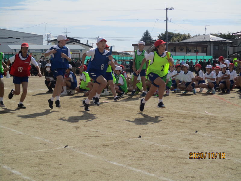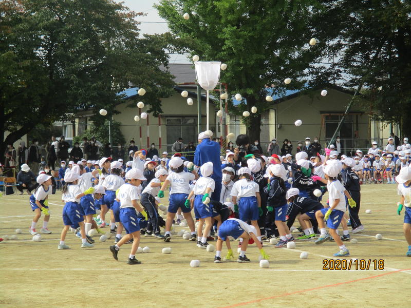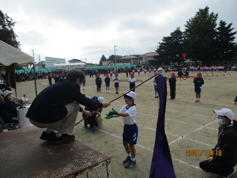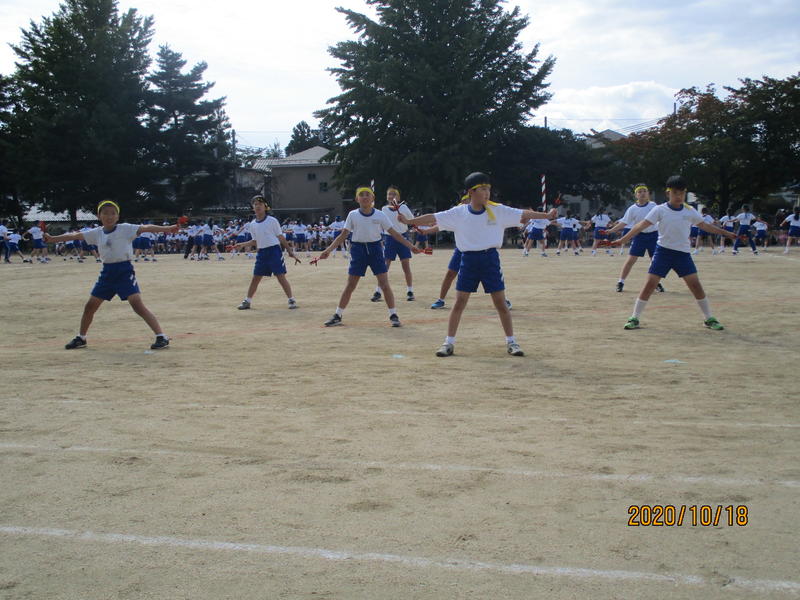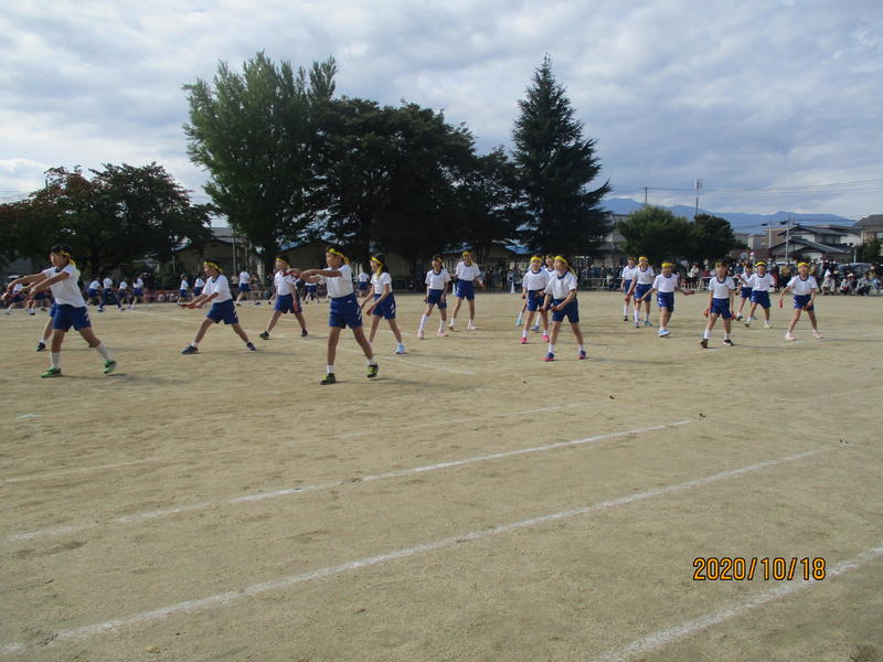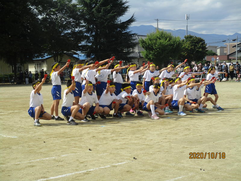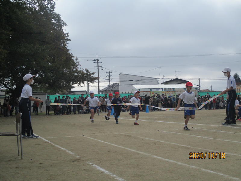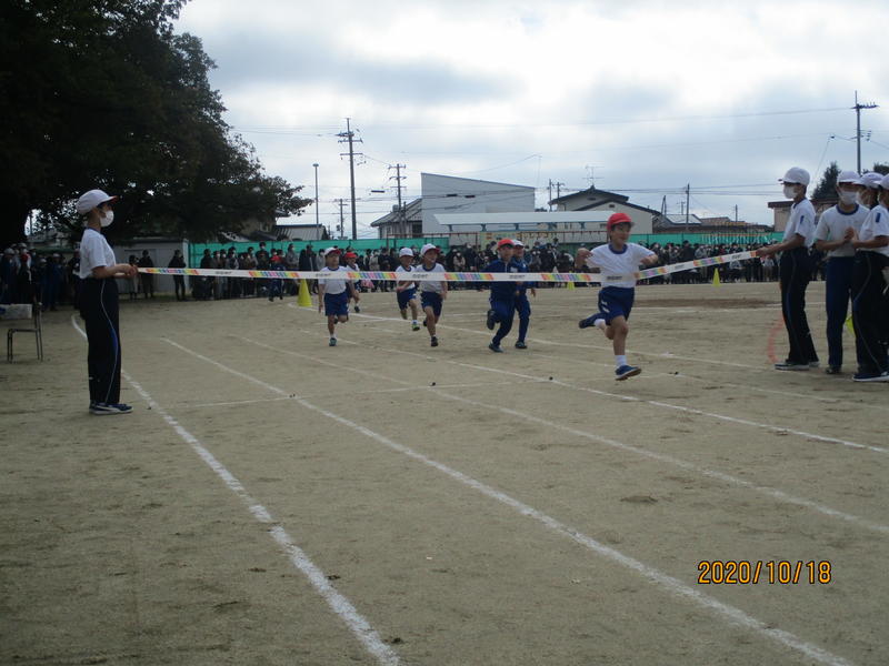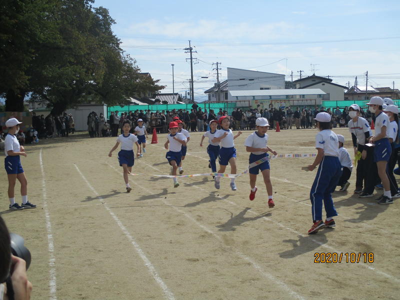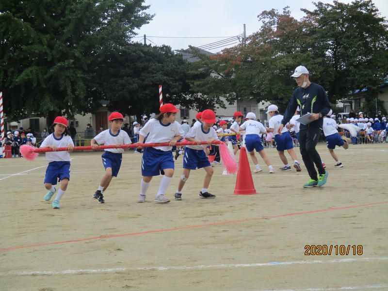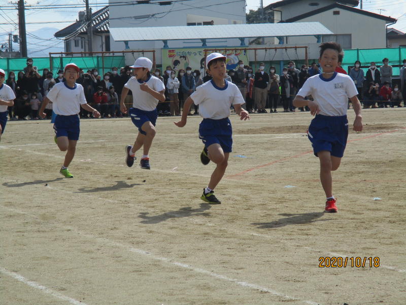 雨のため1日延期になった本年度の運動会でしたが、10月18日(日)は雨も上がり、子どもたちは練習の成果を十分に発揮して、どの学年も力一杯競技に参加することができました。