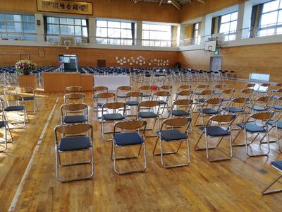本日卒業式に向けた会場作成を行いました。コロナウイルス感染症防止にともない、参列者を卒業生、保護者、職員に限定して挙行します。卒業生や保護者の皆さんにとって一生に一度の晴れ舞台となるよう、今年度は卒業生と保護者の対面式にしております。会場のレイアウトを掲載しますので、当日のご参考にご覧ください。