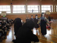 (卒業生の入場は、演台の手前で左右に分かれます。1・2組は右手へ、3・4組は左手に曲がります。)